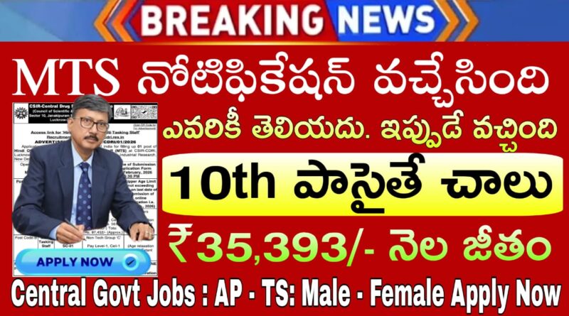 Free Jobs : 10th అర్హతతో ప్రభుత్వ ఉద్యోగాల భర్తీ | CSIR-CDRI Notification 2026 In Telugu CSIR-CDRI Recruitment 2026 Latest MTS, Hindi