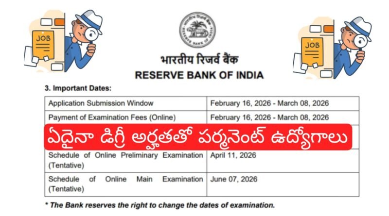 RBI అసిస్టెంట్ నోటిఫికేషన్ 2026 వచ్చేసింది : 650 ఖాళీలు, మార్చి 8 వరకు ఆన్లైన్లో వెంటనే దరఖాస్తు చూసుకోండి రిజర్వ్ బ్యాంక్ ఆఫ్ ఇండియా (RBI)