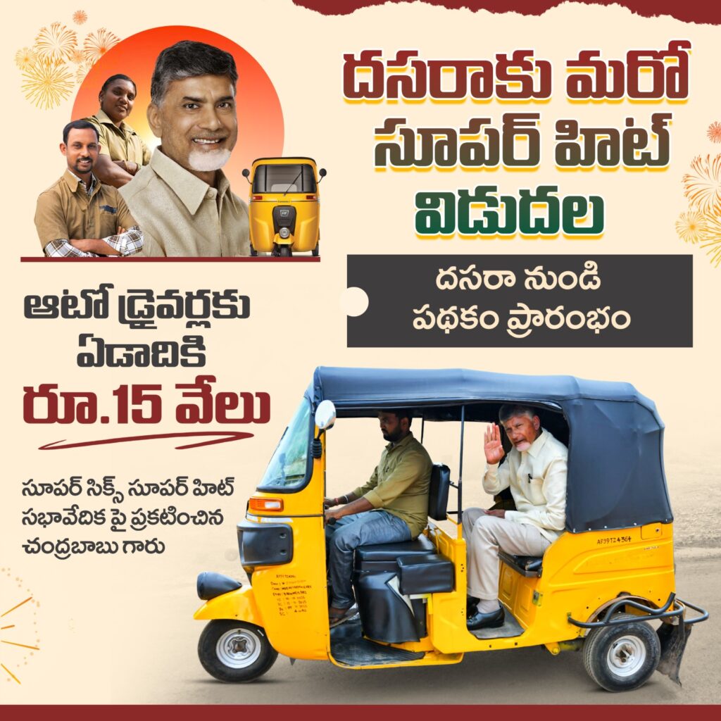 Andhra Pradesh Auto Drivers Vahanamitra 15000 Dasara Benefit all details in Telugu : ఆంధ్రప్రదేశ్‌లో ఆటో డ్రైవర్ల జీవనోపాధిపై ఇటీవల కొన్ని సంచలనాత్మక మార్పులు చోటుచేసుకున్నాయి. ముఖ్యంగా ‘స్త్రీశక్తి’ పథకం అమలులోకి వచ్చి, మహిళలకు ఆర్టీసీ బస్సుల్లో ఉచిత ప్రయాణం అందుబాటులోకి వచ్చిన తర్వాత, ఆటో డ్రైవర్ల ఆదాయ వనరులు బాగా తగ్గిపోయాయి. ఇది వారి జీవన ప్రమాణంపై నేరుగా ప్రభావం చూపింది. ఈ నేపథ్యంలో సీఎం నారా చంద్రబాబు నాయుడు తీసుకున్న తాజా నిర్ణయం – ప్రతి ఆటో డ్రైవర్‌కు వాహనమిత్ర పథకం కింద ఏటా రూ.15,000 ఆర్థిక సాయం – ఎంతో ఉత్సాహం కలిగిస్తోంది.