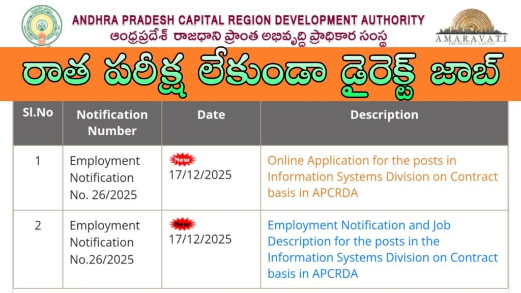 No Fee : రాత పరీక్ష లేకుండా అమరావతి లో ఉద్యోగాలు | APCRDA Notification 2025 Apply Now
