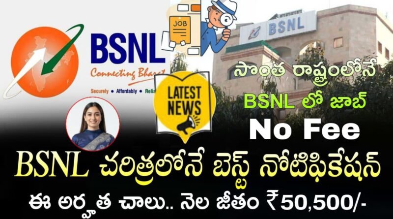 కొత్తగా తెలుగు వారికి BSNL లో బంపర్ నోటిఫికేషన్ విడుదల Latest BSNL Notification 2026 Apply Online Now