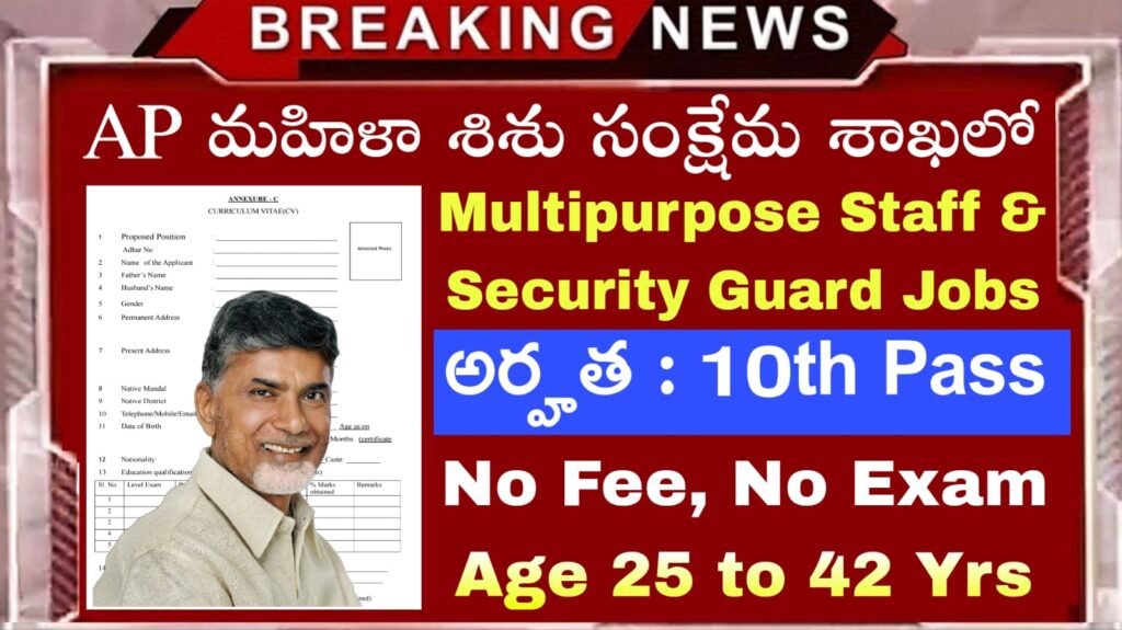 Latest AP DWCWEO Recruitment 2026 Latest multipurpose staff & security guard Jobs Notification Apply Offline Now : భారతదేశంలో ప్రభుత్వ ఉద్యోగాల కోసం ఎదురు చూస్తున్న నిరుద్యోగ యువతకు సువర్ణావకాశం లభించింది. జిల్లా మహిళా & శిశు సంక్షేమం & సాధికారత కార్యాలయం(DWCWEO) అల్లూరి