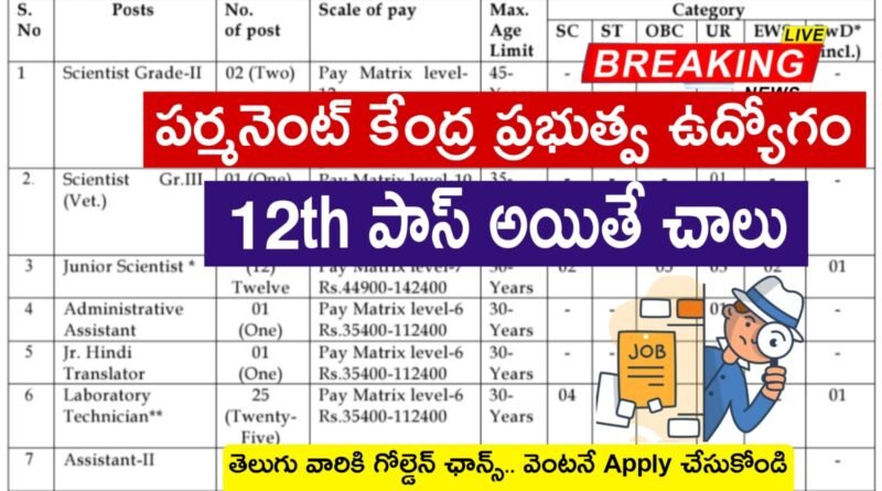 🔹జూనియర్ సైంటిస్ట్ పోస్టులకు : నెలకు రూ.44,900 – రూ.1,42,400+ వరకు జీతం చెల్లించడం జరుగుతుంది.