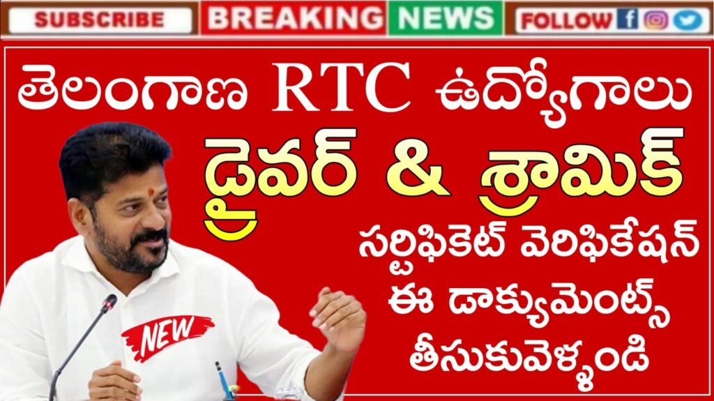 RTC Jobs : 1743 డ్రైవర్స్ & శ్రామిక్స్ ఉద్యోగాలకు సర్టిఫికెట్ వెరిఫికేషన్, డ్రైవింగ్ టెస్ట్ & ఫిజికల్ టెస్ట్ పూర్తి వివరాలు