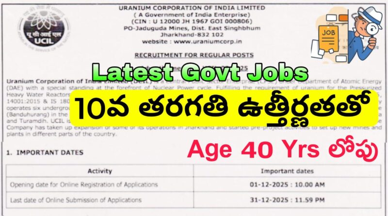 Read More10th అర్హతతో కేంద్ర ప్రభుత్వ ఉద్యోగాల భర్తీ || UCIL Recruitment 2025 In Telugu Online Apply Now UCIL Recruitment 2025 Latest Mining