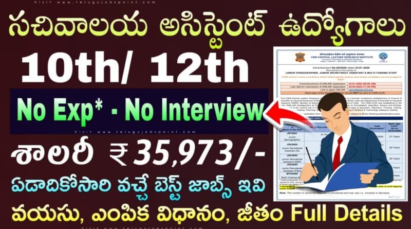 Read More10th అర్హతతో సచివాలయ అసిస్టెంట్ నోటిఫికేషన్ విడుదల | Latest CSIR CLRI Recruitment 2026 Apply Now Latest CSIR CLRI Recruitment 2026 Latest
